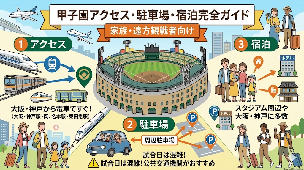 甲子園観戦を快適に楽しむには、アクセス・駐車場・宿泊の事前計画が重要です。
